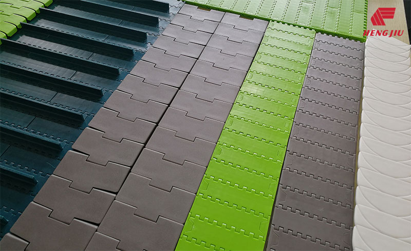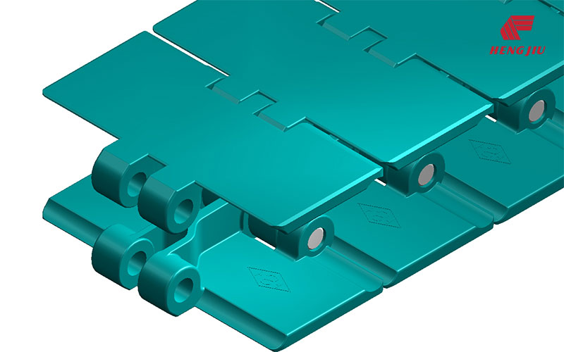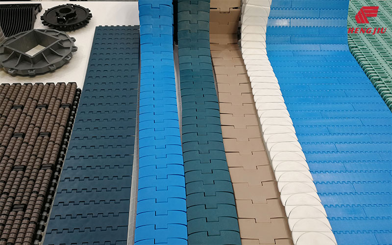 标准化标准塑料链板用于一般的易拉罐、PET瓶、玻璃瓶及纸盒包装输送;高摩擦性链板(带橡胶垫、顶部带橡胶条)用于爬坡和下坡输送;带滚珠的链板用于输送物有堆积的输送机上,以减少产品间的背压力和降低噪音;这一系列的产品使输送设备得以标准化,从而可以使用相同标准的链轮、轨道、回转轮和摩擦条。