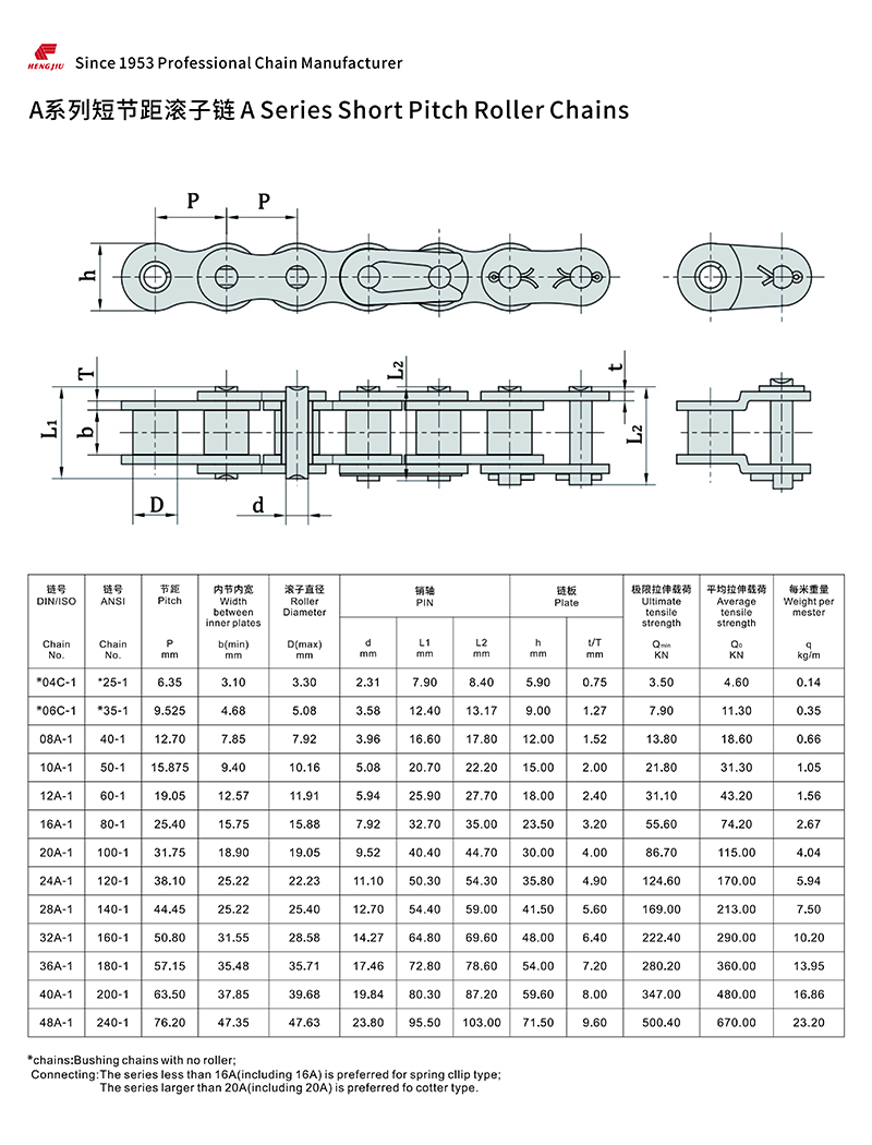 ballbet贝博集团的短节距滚子链以其高强度和耐疲劳著称,尺寸完全遵循ANSI、ISO和BS标准,可组装成单排、双排和多排,以适用所传动的功率和不同的配置空间。